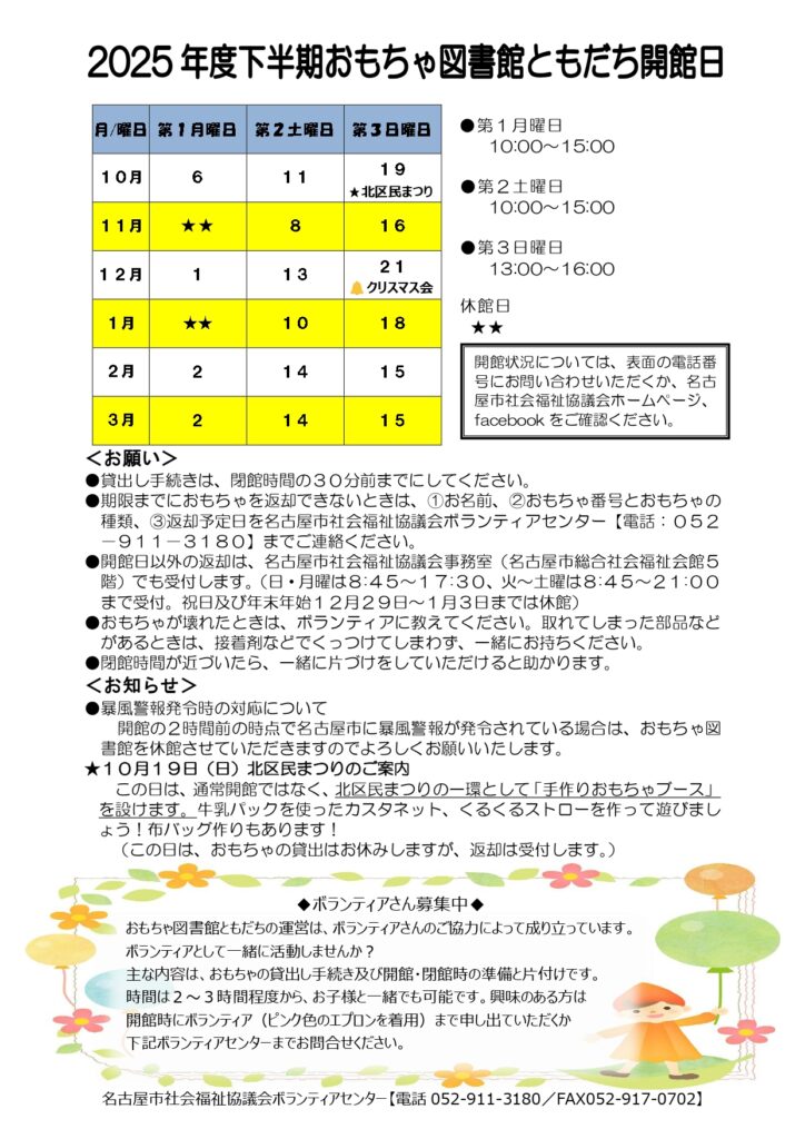 ※下半期(~3月まで)の開館スケジュールはチラシをご覧ください。