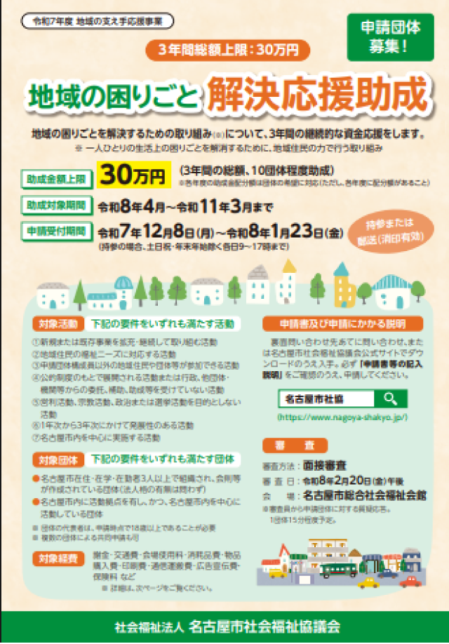 令和7年度地域の困りごと解決応援助成事業申請団体 募集!【受付は終了しました】